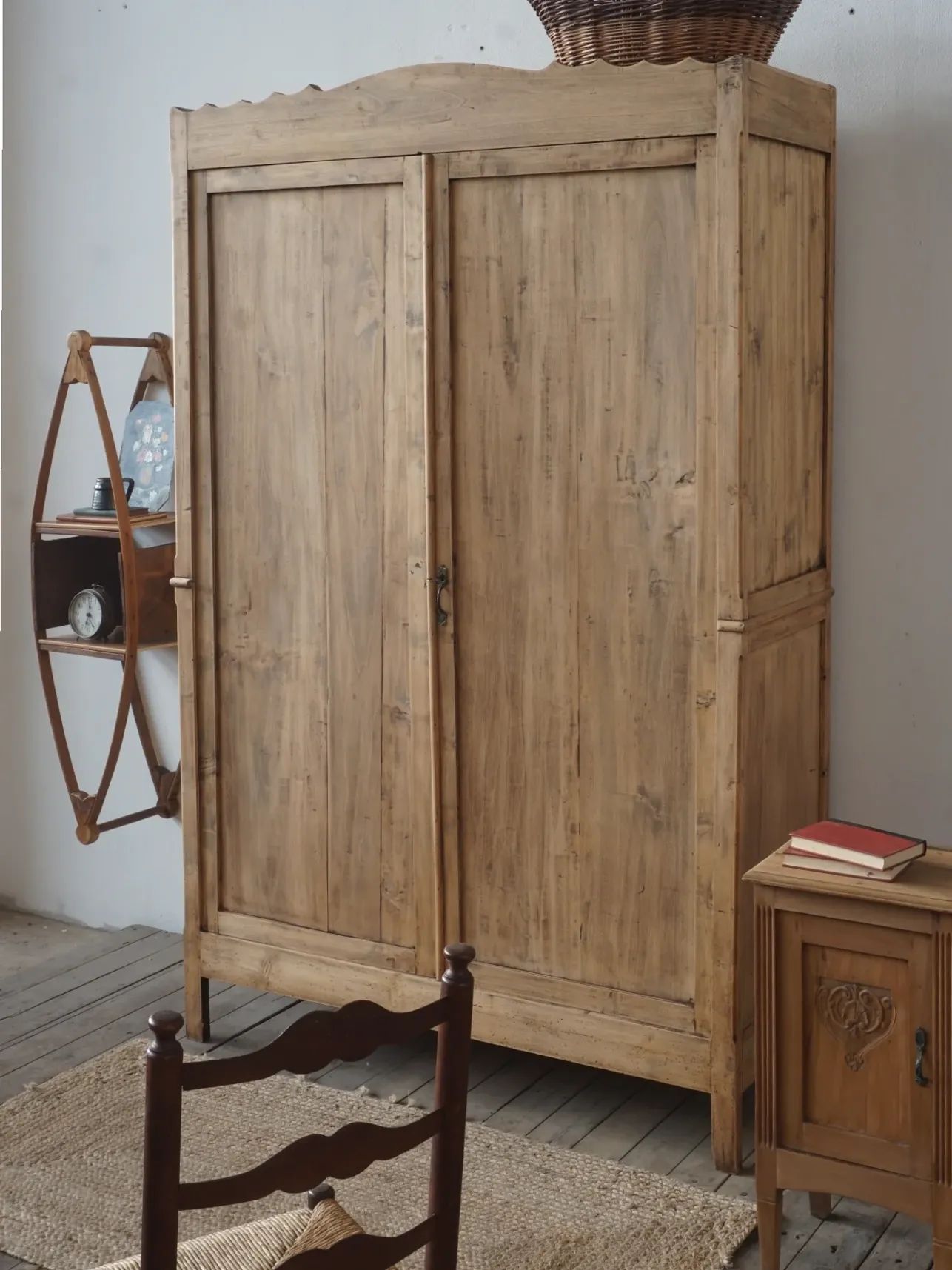 Bellissimo armadio a due ante in legno dolce con ampio cassetto interno.