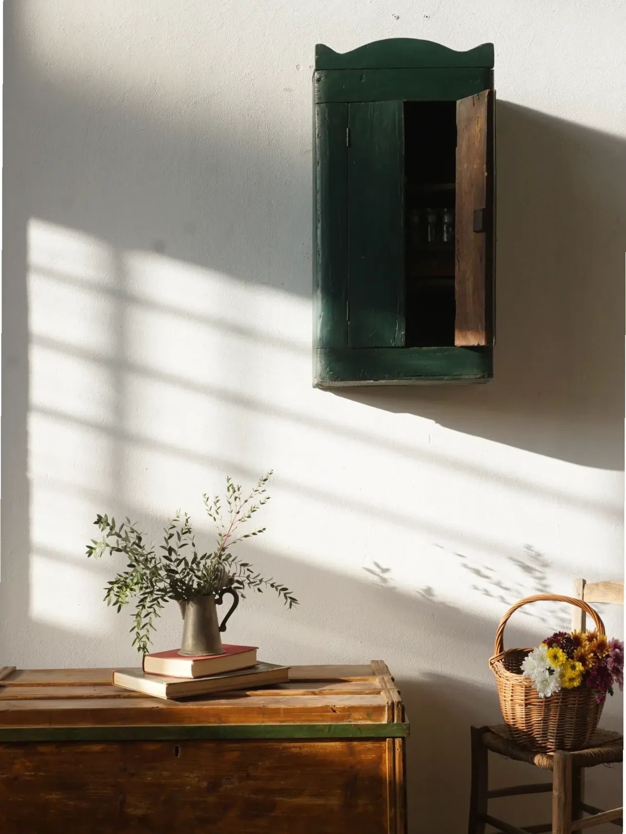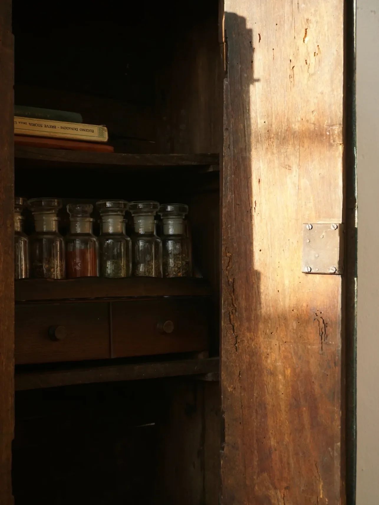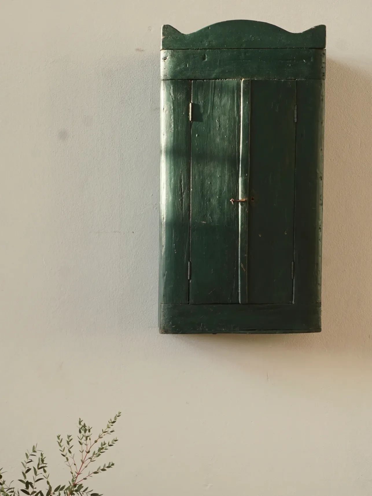 Questo pensile ci racconta molto di chi l'ha creato, tanti anni fa. Realizzato in contesto rurale con legno di recupero è solido e molto caratteristico.