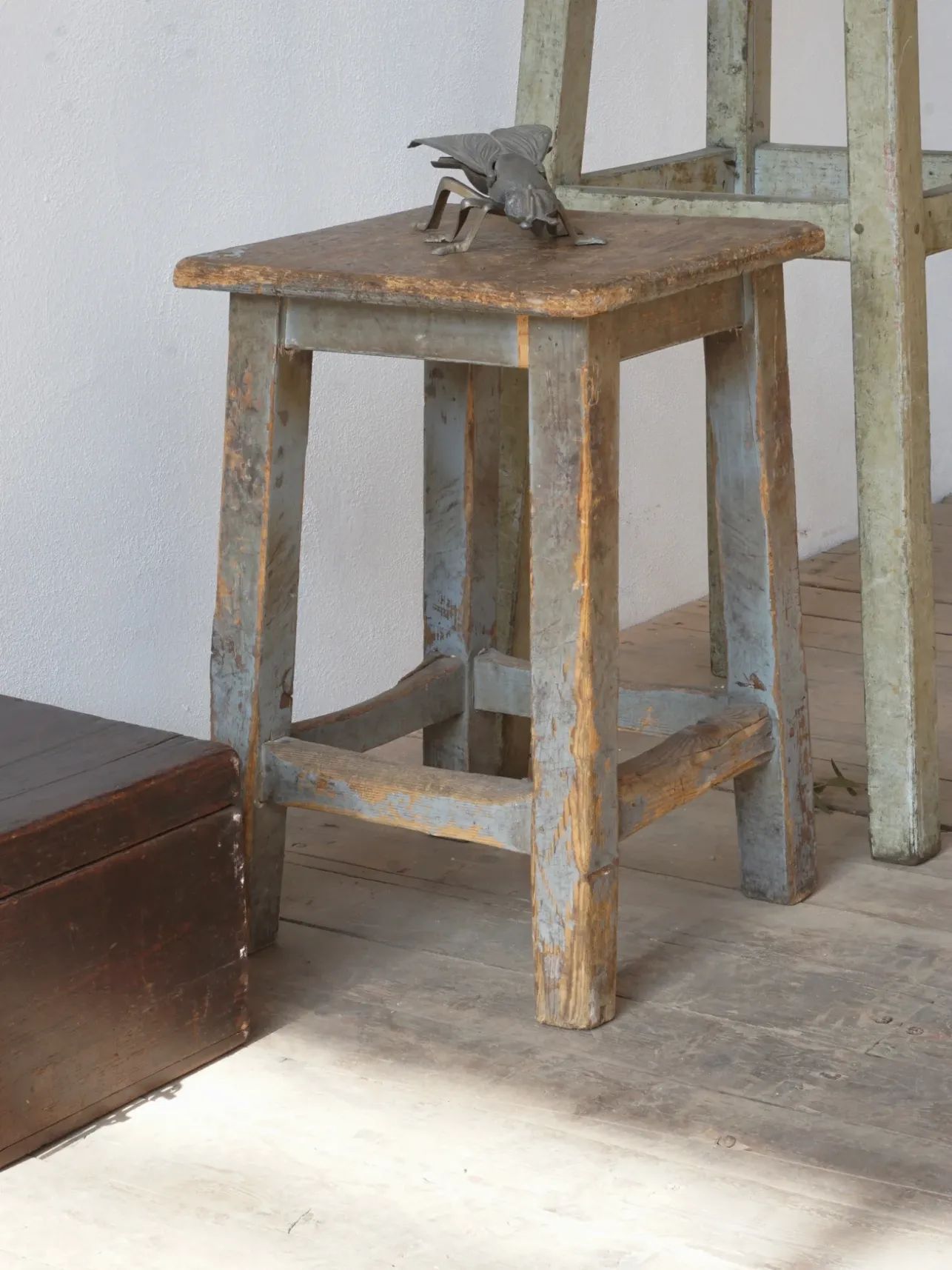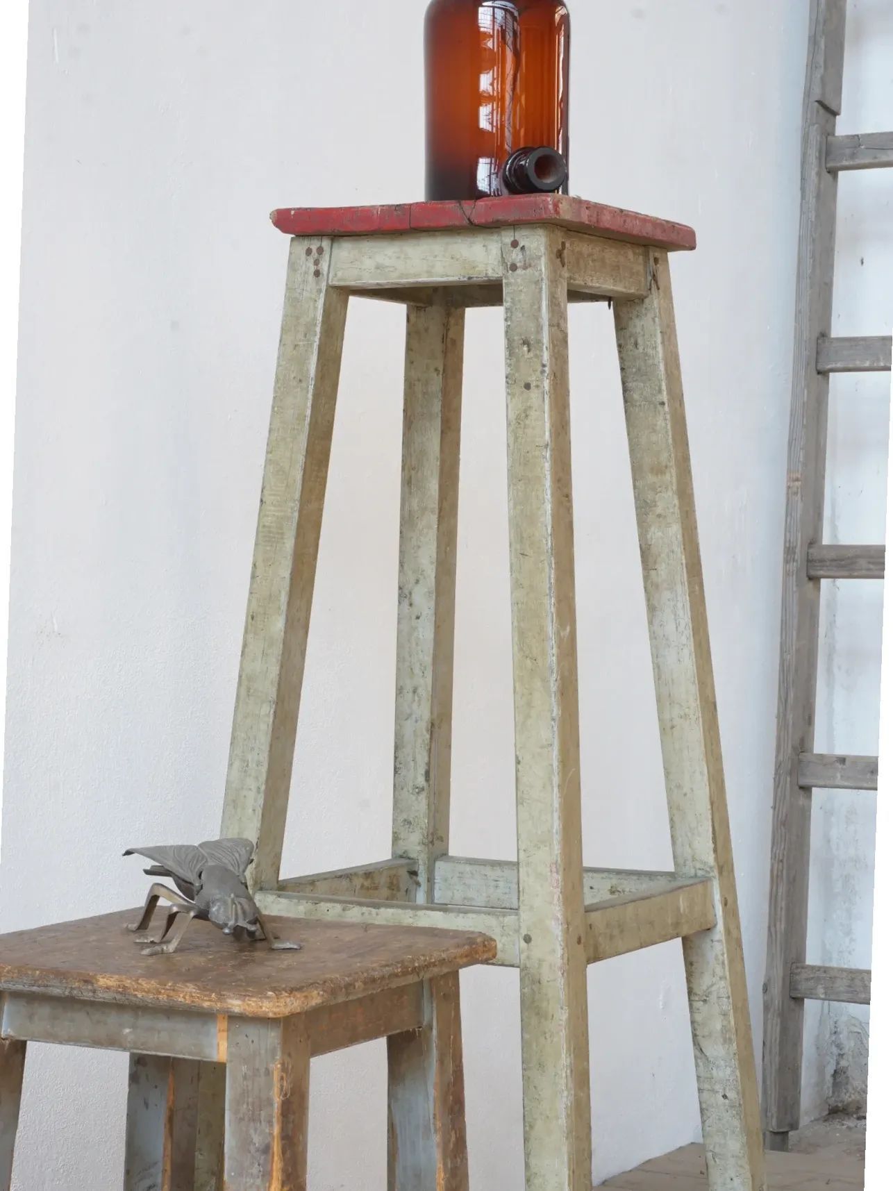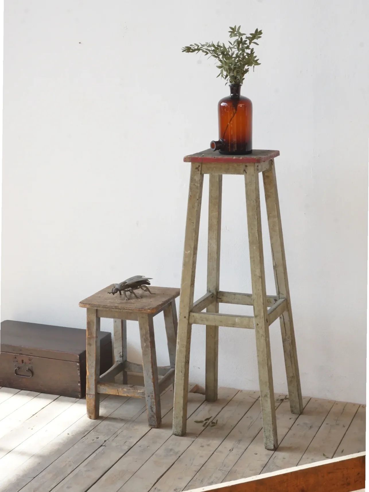 Sgabello e piedistallo in legno massello dal colore e dalla patina perfetta.